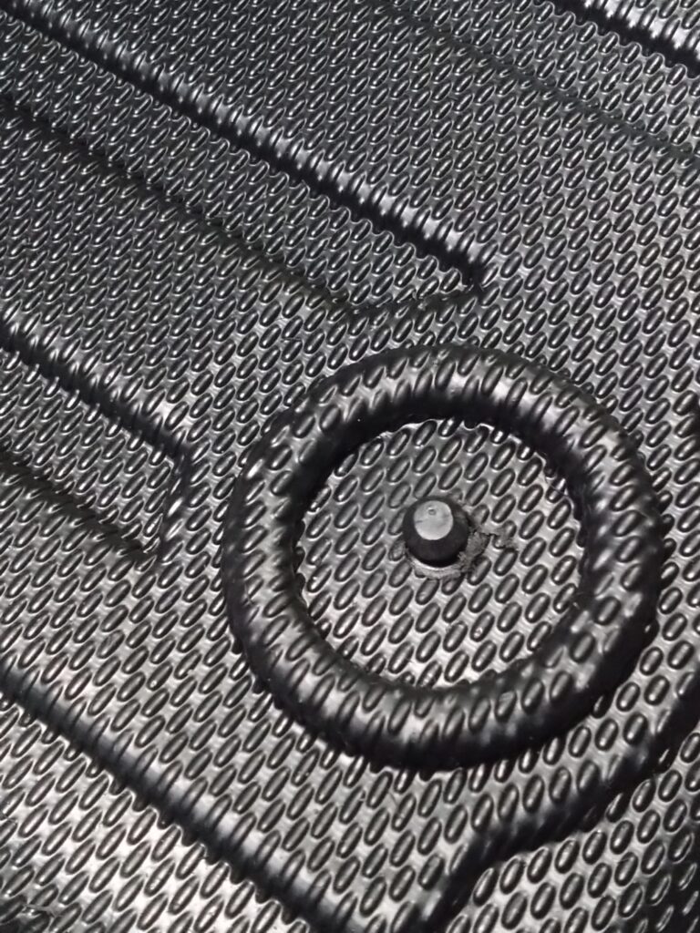 フロアマットがズレる場合は上記写真のように穴を空けていただいて止めていただくようお願いいたします。